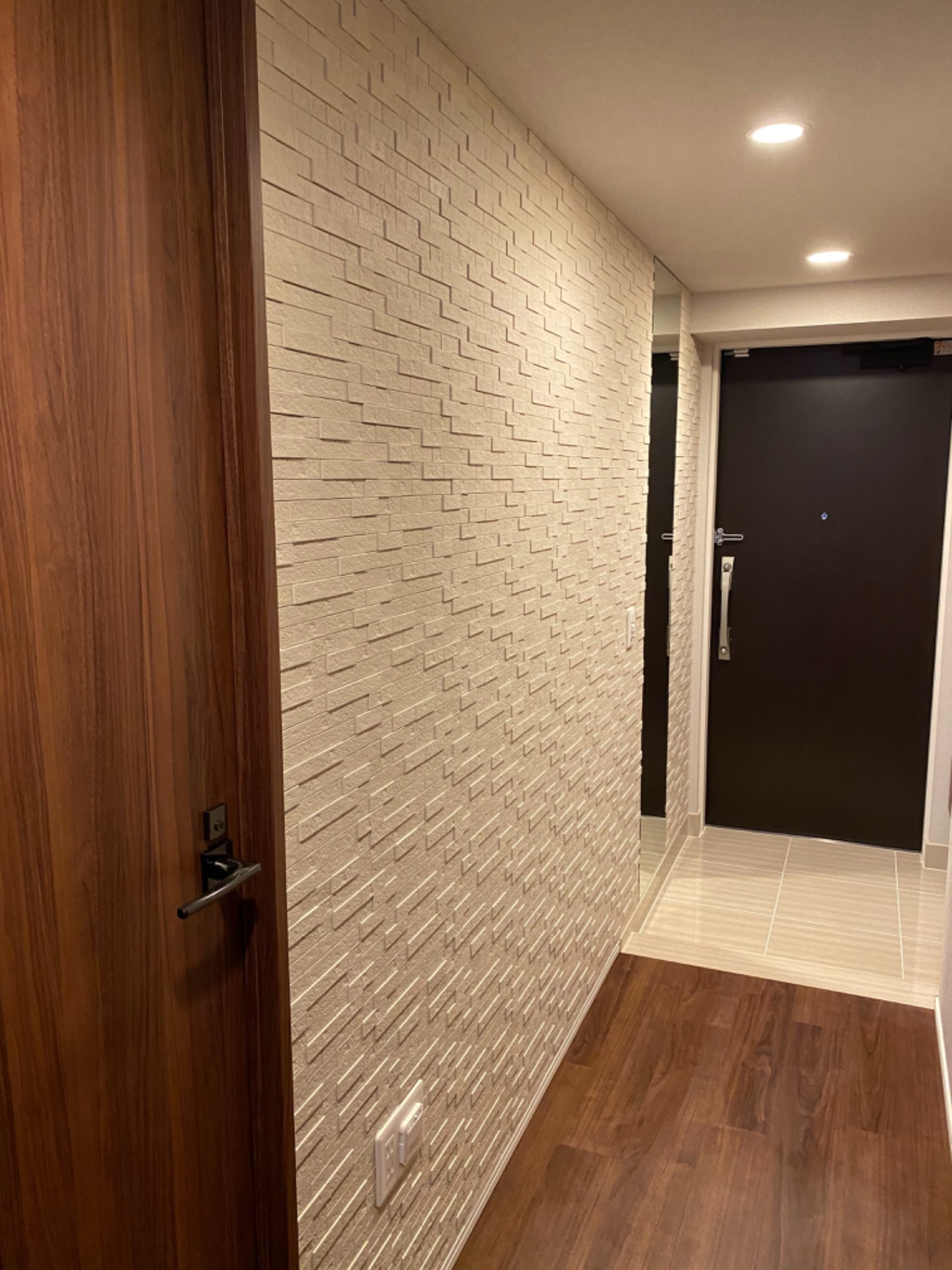 エコカラットを玄関に鏡をつけました 2020/07/16 本日の作業はエコカラットを玄関に施工してオーダーミラーをつけました。エコカラットと玄関のオーダー鏡は今やマンションの定番アイテムですね。エコカラット、鏡の施工はトラストDにお任せください。