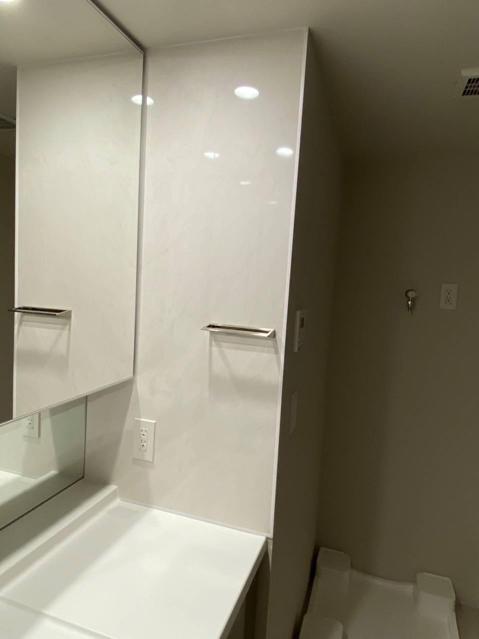 エコカラットとフロアコーティングを埼玉県八潮市で施工しました 2023/03/08 本日の作業は埼玉県八潮市にありますジオ八潮でエコカラットやフロアコーティングを施工させて頂きました。エコカラットはシンプルにリビングにたけひごを横目張りで施工しました。玄関は高級感のあるグラナスルドラとオーダーミラー450ミリのセット、シンシツにはシルクリーネを馬張りで施工しました。洗面台にはアイカパネルを設置させて頂きました。また流行りがきそうですね。窓ガラスにはフィルムを施工しました。エコカラットやフロアコーティングの施工ならトラストDにお任せください。