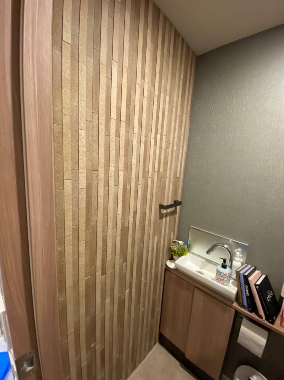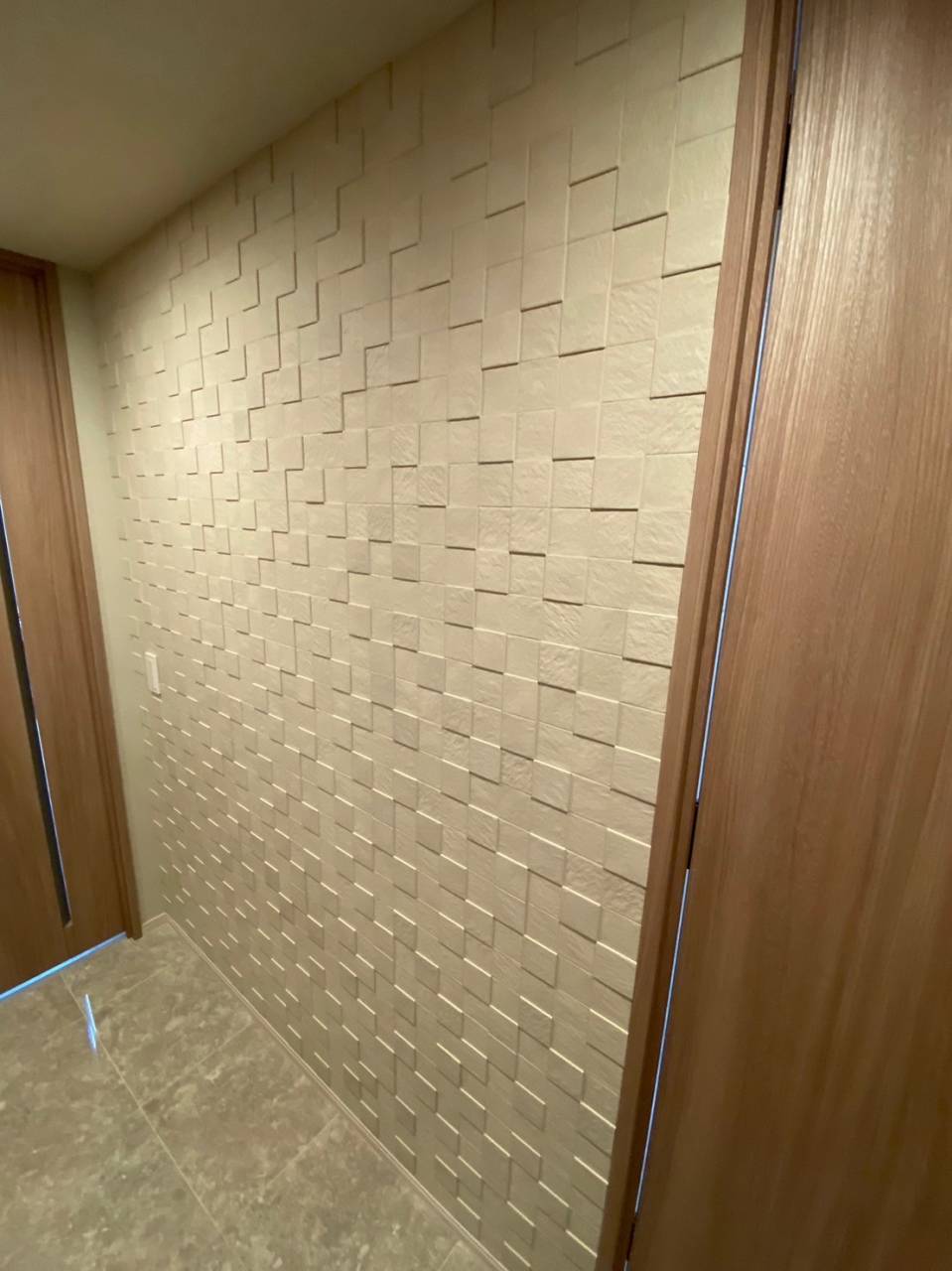 エコカラットを東京都江東区で施工しました 2023/08/27 本日の作業は東京都江東区にありますプラウドタワー亀戸クロスでエコカラットを施工させて頂きました。毎日暑いので今の時期はエコカラットが湿度調整をしてくれるのでオススメですね♪今回のエコカラットの種類は玄関にディニタのセージグリーンを施工させて頂きました。廊下にはペトラスクエアを施工させて頂きました。トイレと洗面所には和細工を施工させて頂きました。寝室にはエコカラット最高級のサンティェを施工させて頂きました。東京でエコカラットの施工ならトラストDにお任せください。